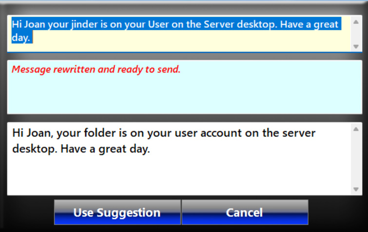 AI Composer in action during a message interchange. It does need to be called it does not barge in and stick annoying options in your way.